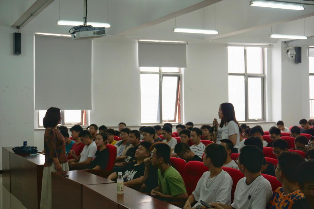 贾老师首先为新生列举了我院优秀学子的事迹,鼓励同学们要自信从容,自立自强,并带领新生开展自我认知,强调树立正确的世界观、人生观、价值观的重要意义。在互动交流环节,贾老师询问新生们入学存在的困惑,并给予分析解答。随后贾老师通过“开学六问”引导新生找准位置,确立目标,明确方向,期间同学们踊跃参与,积极与老师分享自己的大学规划。