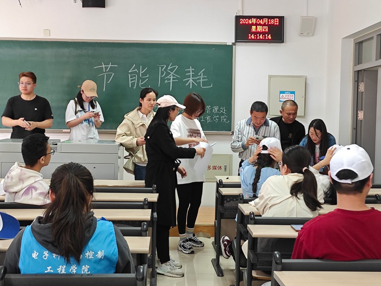 4月18日下午,电子科学与控制工程学院党总支组织40名师生党员与电子青年科技联盟成员,协助学校后勤管理部门,对学校南北校区各楼宇内办公室、教室、公共区域照明设施、插座及相关电气设备等型号、用电功率、数量开展一次全面系统的调查统计工作。