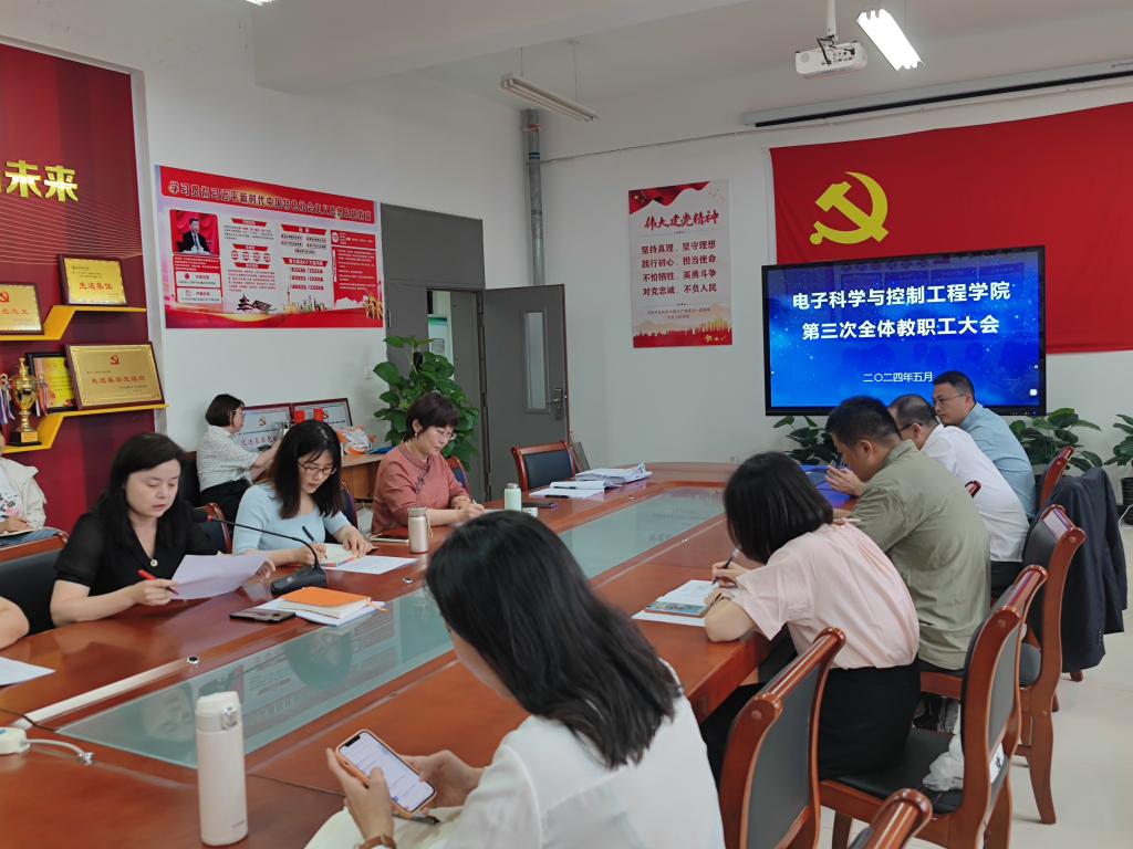 5月23日下午,电子科学与控制工程学院召开全体教职工大会,会议由党总支书记贾甚杰主持,学院全体教职工参会。