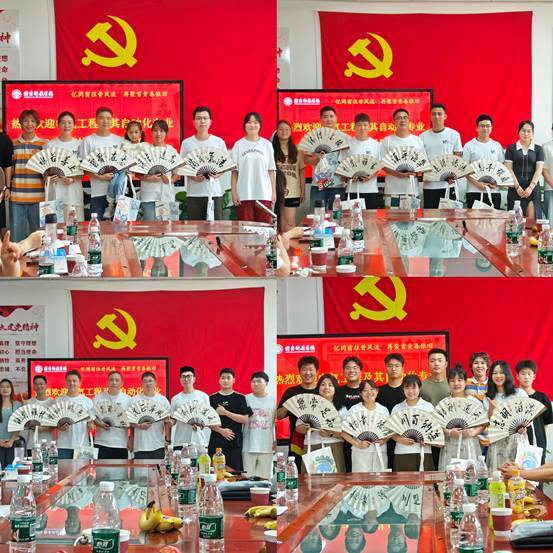 捐赠仪式前,我院举办了师生座谈会和校友分享会,学院党政班子贾甚杰、蔡建羡、姚振静,专业主任李立新,团总支书记阎光耀,教师代表于瑞红、姜运芳、胡治国,在校学生干部代表参加座谈会。校友们一一表达了对母校和老师们的感激和思念,深情回顾了在校求学时光,感谢母校对自己的培养和支持,也向老师们汇报了工作的成果与家庭的收获。老师们回顾了十几年前与校友们共同相处的感动,表达了对校友的欢迎和祝福,也希望校友们始终关注和支持母校的建设与发展。在校的学弟学妹精心制作了宣纸折扇,写上美好的祝福赠给学长学姐,学长学姐结合自身在校期间的学习及步入岗位工作的实际经验,与学弟学妹做了深入的交流分享,在职业生涯规划、专业学习、为人处世、考研就业等方面做了很好的指导。