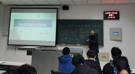 2020年11月24日18:30副校长洪利来到所联系电子科学与控制工程学院地震仪器协同实验班190525班,与同学们一起参加班风学风建设主题班会,电控学院党总支书记、辅导员、班主任参加主题班会。