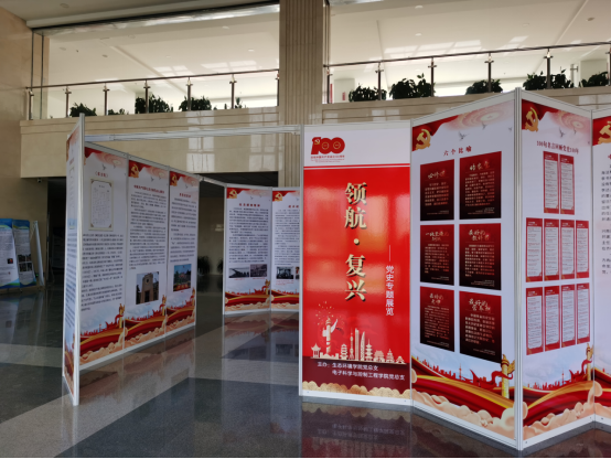 为深入开展党史学习教育,促进广大党员“学党史,知党情,跟党走”,电子科学与控制工程学院党总支精心策划,与生态环境学院党总支联合在天仪楼二楼大厅举办了“领航 复兴”党史专题展览。5月25日-28日,学院三个学生党支部分别在支部书记朱桃花、郭越、胡志国带领下组织支部全体党员、预备党员进行集中参观学习、交流心得。