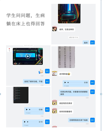 于瑞红老师由于身体原因,本学期的课程上到一半就卧病在床,课程由其他老师代课。但是临近期末,学生还是有很多问题要问于老师。于老师都同通过语音、视频的形式耐心的做了解答。