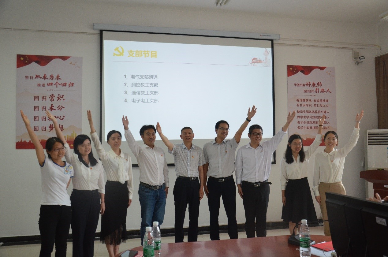 接下来四个教研室党支部通过朗诵、合唱等形式为党的百年华诞献上节日的祝福,祝福伟大的党青春永驻,伟大的祖国繁荣富强,伟大的人民幸福安康。