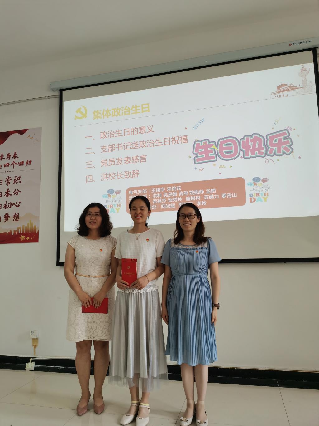 接着,全体党员为上半年入党的15名同志集体庆祝“政治生日”,支部书记为党员依次送上政治生日祝福,颁发“政治生日贺卡”,将党组织真诚的祝福和浓浓的关爱传递到每名党员心中。副校长洪利鼓励全体党员要铭记入党初心使命,再接再厉奋发作为,强化政治意识和大局意识,为应急管理大学筹建贡献智慧和力量。