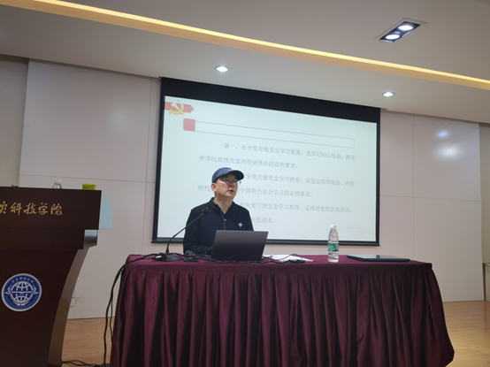 6月24日下午电子科学与控制工程学院与地质工程学院党总支联合邀请学校副校长洪利为师生党员作“弘扬古田会议精神 推进大学筹建”为题的党史学习教育宣讲报告。