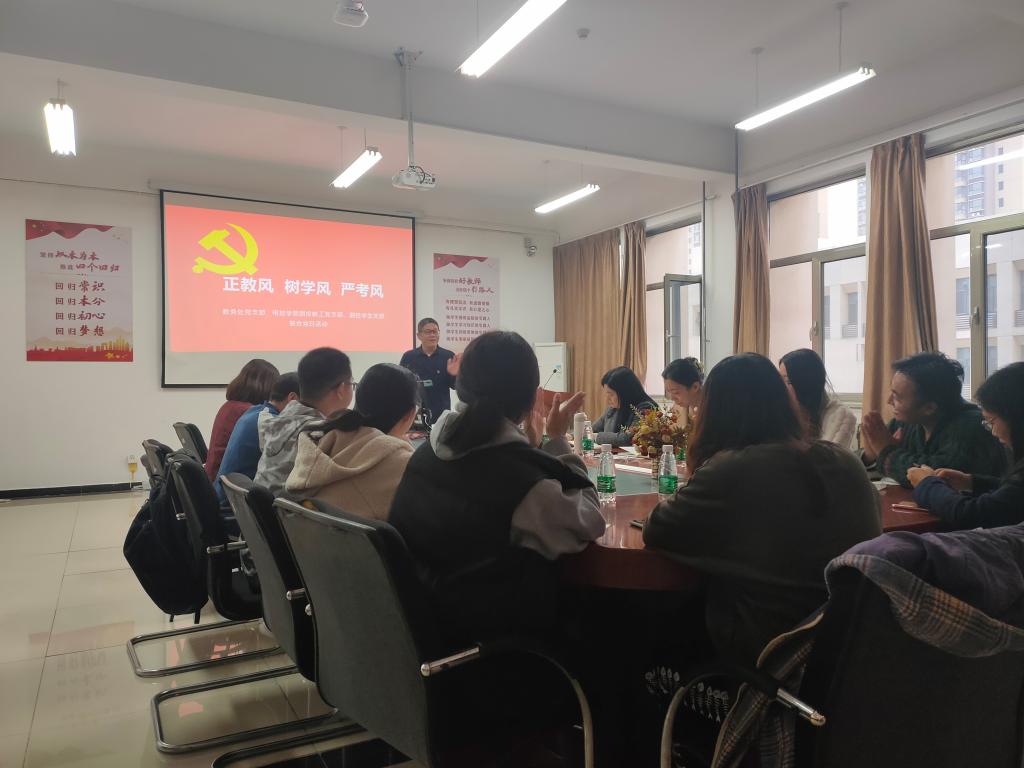 参会党员围绕 “正教风、树学风、严考风”主题开展讨论交流,本着“学生有声音,老师必有回应”的原则,教师对学生的疑问和需求做了耐心细致的解答。