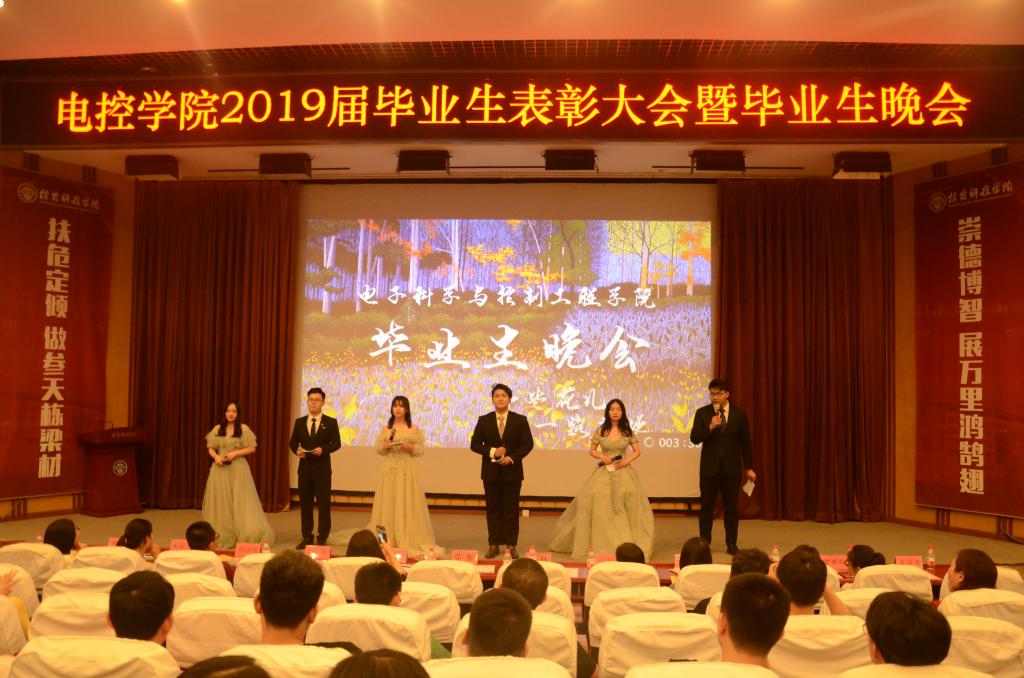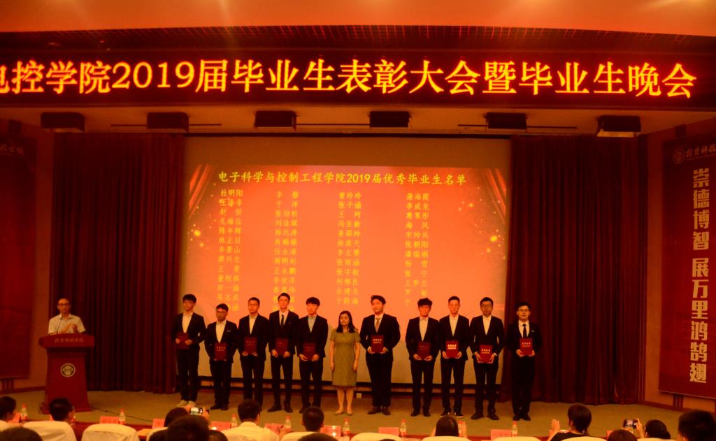 会上,首先由党总支书记贾甚杰宣读了优秀毕业生表彰文件,我院共16人荣获河北省普通高校2019届优秀毕业生荣誉称号,33人荣获BB贝博艾弗森官方网站2019届优秀毕业生荣誉称号,50人荣获电子科学与控制工程学院2019届优秀毕业生荣誉称号。随后与会领导为优秀毕业生代表颁发荣誉证书并合影留念。贾欣宇同学代表全体毕业生发言,并带领全体毕业生宣誓,同学们励志努力奋斗,为母校争光,表达了对母校热爱和不舍。孙扬同学代表全体在校生发言,表达了对毕业生的祝福并立志想优秀学长学姐学习。吴燕雄老师代表全体教师对毕业生的殷切嘱托和叮咛关怀感动了所有学生。教研室主任和毕业班辅导员老师集体为全体毕业生送上了深深地祝福。最后,党总支书记贾甚杰老师对本次表彰大会作总结讲话,大会圆满结束。