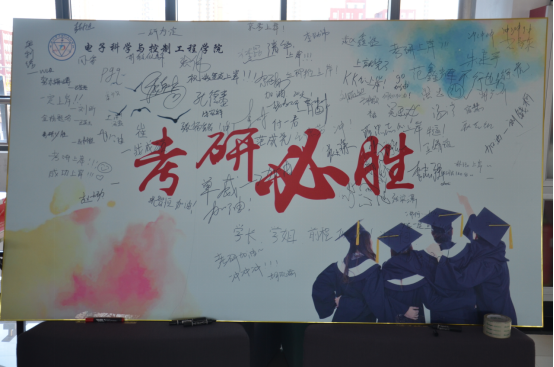 本次活动旨在鼓励我院参加考研的学长学姐们,为学长学姐们送上祝福,助力考研。通过本次活动,展现了电子科学与控制工程学院学生们“向上向善,大气担当”的品质、体现了我院同学们互帮互助、互相鼓励的优良品德。希望全体考研人顺利上岸,希望学长学姐们能心想事成、前程似锦、好事成双、无悔青春、考研必胜!