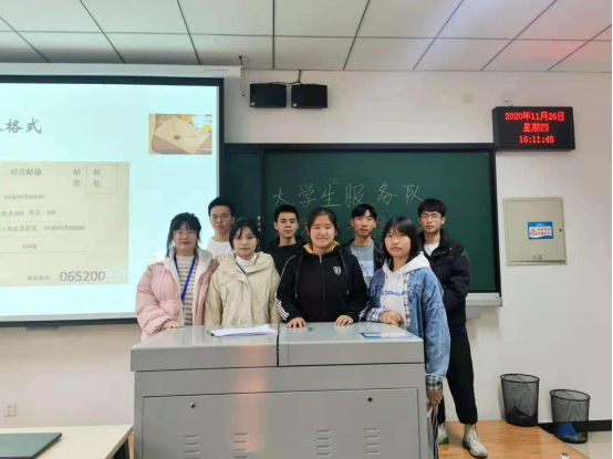 本着“知恩于心,感恩于行”的初衷,践行“不忘传统,诉情以笔”的价值观。电子科学与控制工程学院大学生服务队于2020年11月26日下午2点在天仪楼609举行“纸短情长,道不完感恩情丝”书信活动。参加本次活动的有大学生服务队部长谭清元,副部长石蕾,阳雨帆,宁振文,服务队全体干事及其报名本次活动的全体成员。(图一)