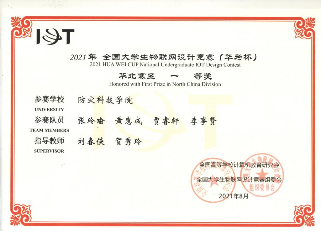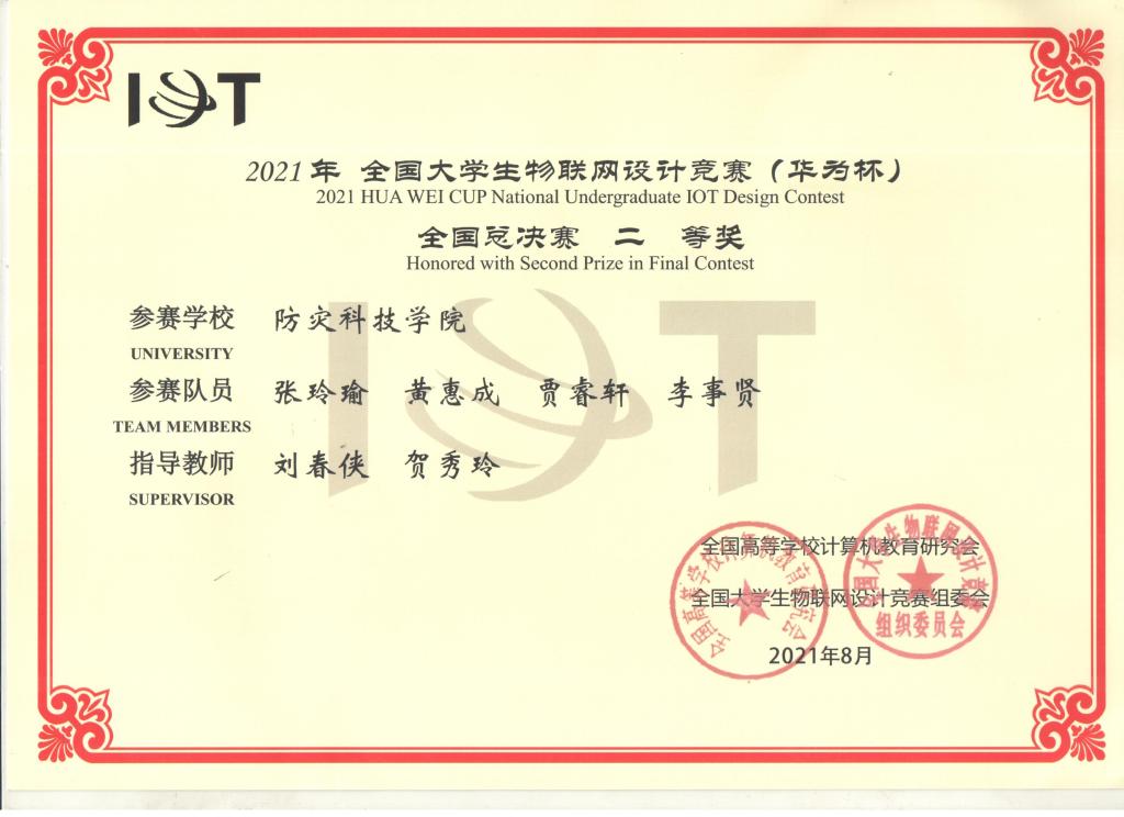 8月26日-27日贝博官网电子科学与控制工程学院在第八届“全国大学生物联网设计竞赛(华为杯)”中喜获佳绩。由刘春侠、贺秀玲老师指导的“Augety”团队(张玲瑜、黄惠成、贾睿轩、李事贤)获得华北赛区一等奖和全国二等奖。