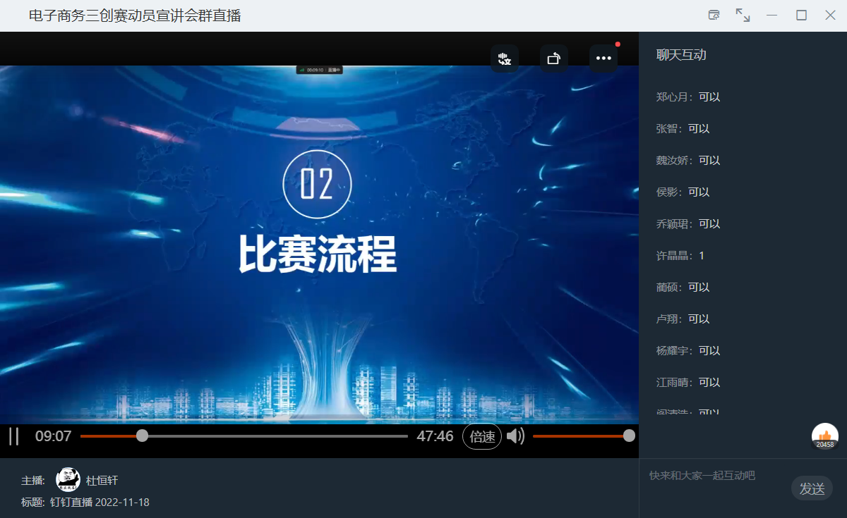 全国大学生电子商务“创新、创意及创业”挑战赛简称“三创赛”,为使同学们对“三创赛”有更深的了解,提高同学们对“三创赛”的兴趣,培养创新创业意识,创新创业联盟项目实践部于11月18日19点通过钉钉直播的方式举办电子商务“三创赛”动员宣讲会。