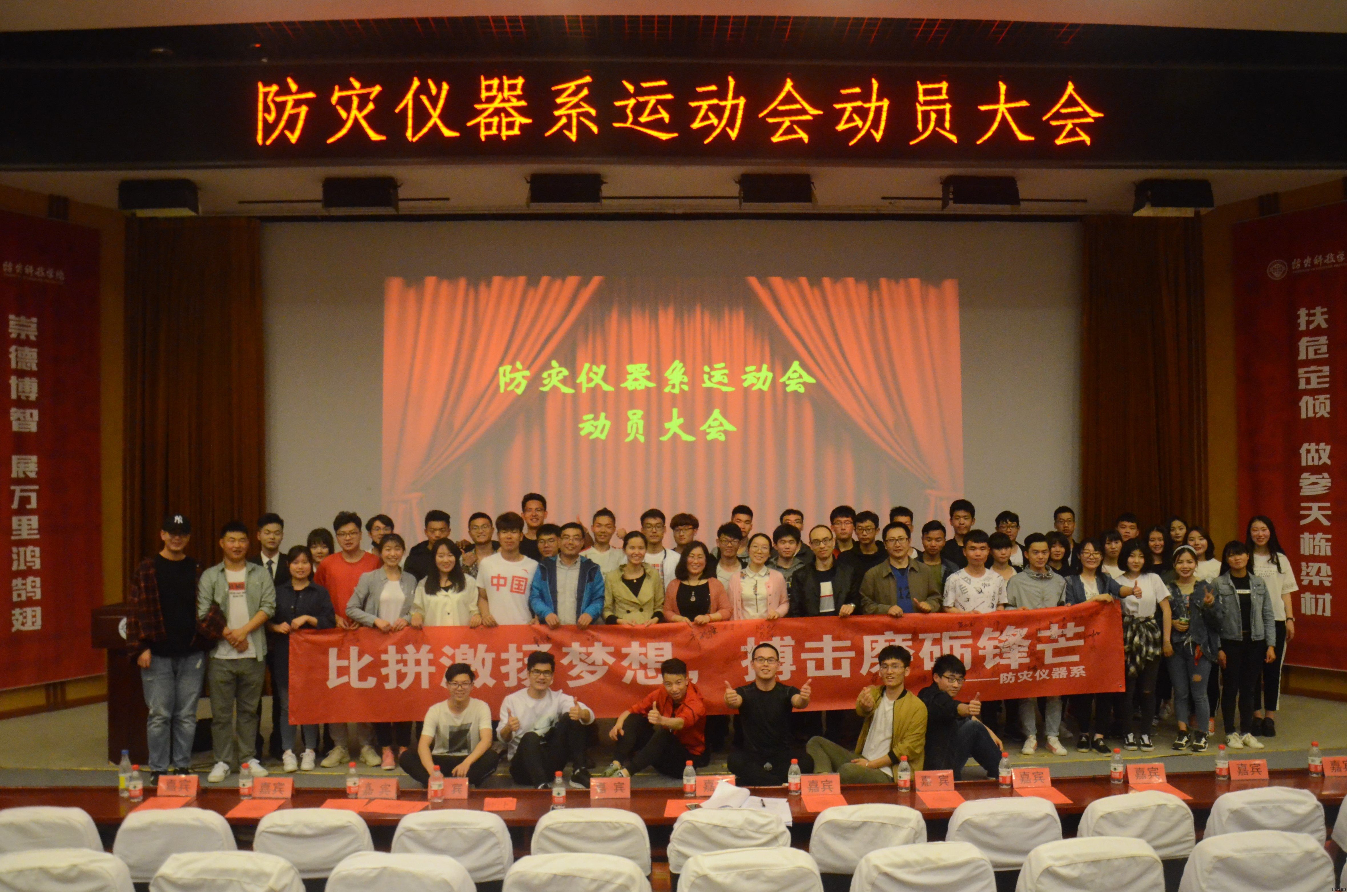 为表彰对防灾仪器系体育事业做出卓越贡献的运动健儿们,动员各组织各班级积极参加BB贝博艾弗森官方网站第三十一届校运会, 4月19日晚7点,我系于南校图书馆二楼报告厅举行防灾仪器系体坛风云人物表彰暨运动会动员大会。大会到场嘉宾有:我系党总支书记贾甚杰老师,团总支书记申世园老师,辅导员阎光耀、胡治国、朱桃花、郭越老师,我系2017级全体大一同学,大会表彰及获奖人员。