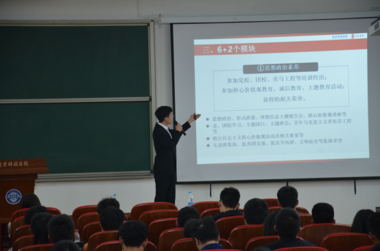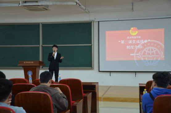 首先,学院“第二课堂”负责人张智涵结合《BB贝博艾弗森官方网站“第二课堂成绩单”制度实施办法(试行)》从注意事项、组织机构以及模块分值等方面为同学们进行了介绍,并强调了“第二课堂”对学生成长和发展的重要性。