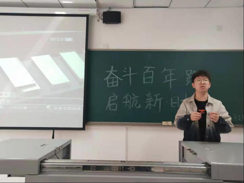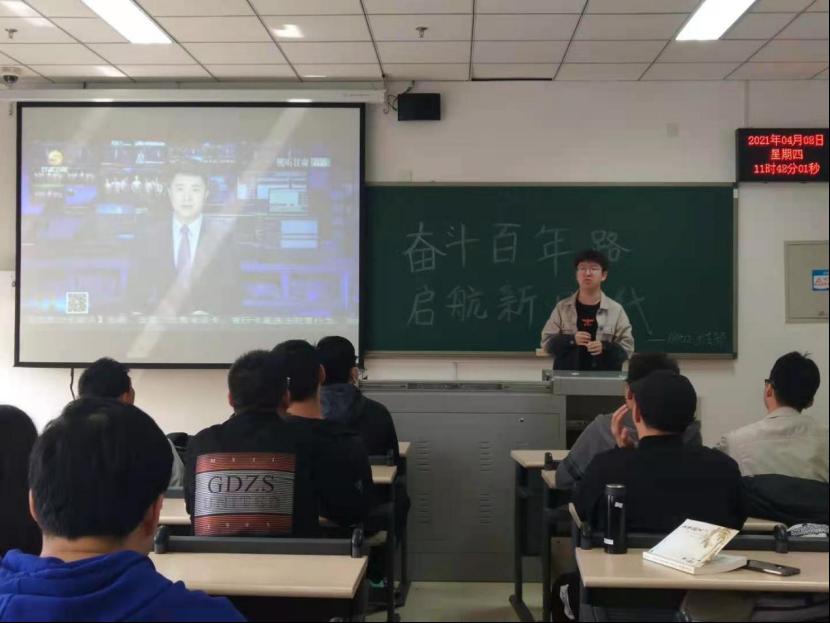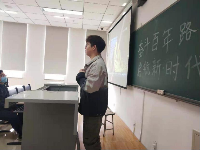 活动开始前,团支书给同学们播放了建党100周年相关视频,同学们都在很认真的观看视频,从视频中同学们感悟到了很多,作为当代大学生应该牢记党的光荣历史。