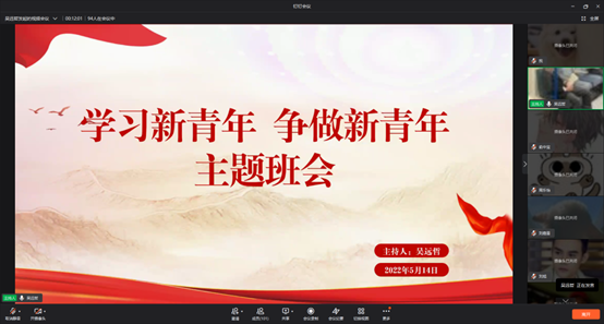 5月10日,学院团总支组织学生干部观看庆祝中国共产主义青年团成立100周年大会的线上直播。青春孕育无限希望,青年创造美好明天。正如习近平总书记在讲话中提到的:“实现中国梦是一场历史接力赛,当代青年要在实现民族复兴的赛道上奋勇争先。时代总是把历史责任赋予青年。新时代的中国青年,生逢其时、重任在肩,施展才干的舞台无比广阔,实现梦想的前景无比光明。” 我们要以社会主义建设者和接班人的使命担当,在全面建设社会主义现代化国家新征程上奋勇争先,用青春和汗水为中华民族伟大复兴贡献我们的青春力量。