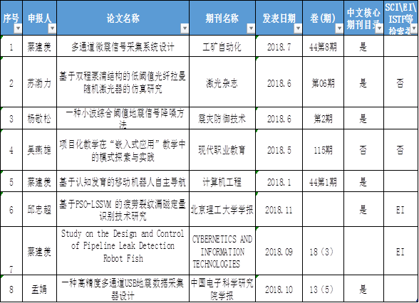 电控院2018年公开发表期刊论文统计表