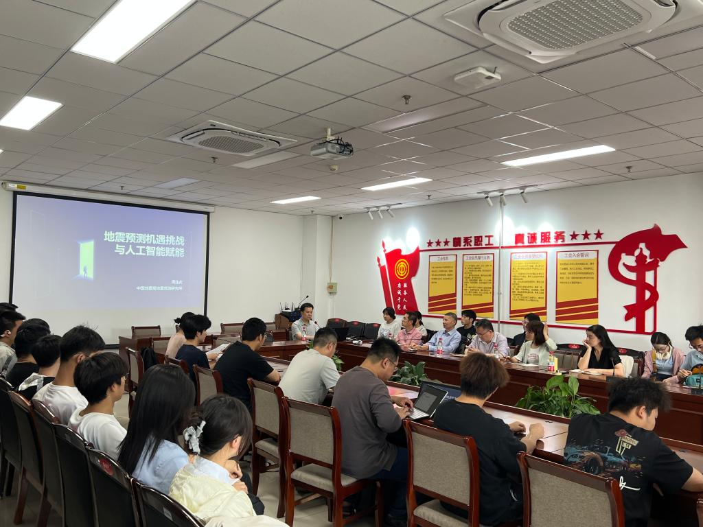 学院领导及教师代表参加讲座,并与周连庆研究员就"AI+地震预测"技术融合、科研合作等议题展开深入交流,现场讨论热烈,学术氛围浓厚。